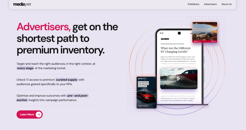 Media.net runs the second-largest contextual advertising program globally, backed by the Yahoo-Bing network. Publisher clients include Forbes, Reuters, and Hearst. For English-language finance, business, and tech content targeting US and UK audiences, Media.net contextual CPMs frequently compete with AdSense and sometimes beat them. The Media.net publisher overview highlights its relevance for premium content sites with high-intent audiences.